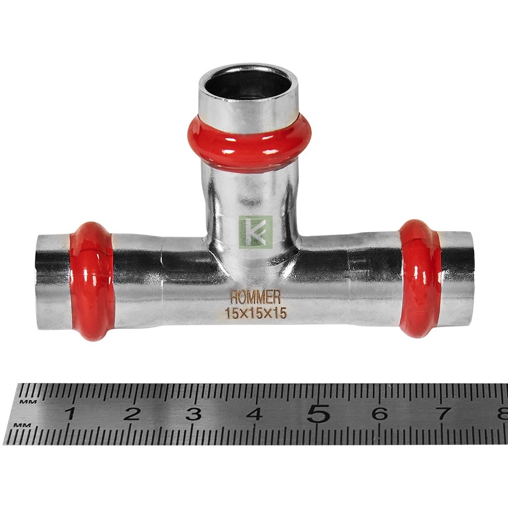 RSS-0013-000015 ROMMER Тройник равнопроходной 15, из нержавеющей стали прессовой