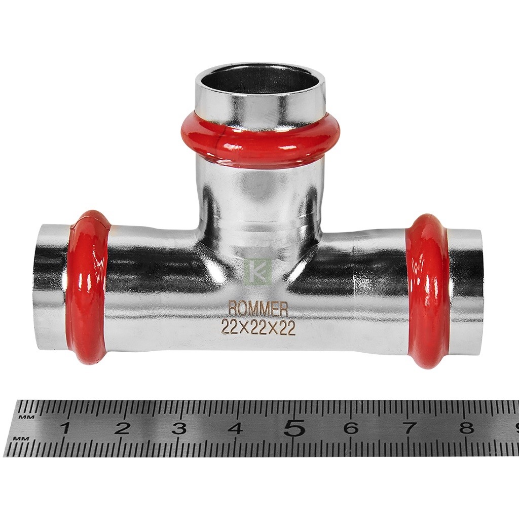RSS-0013-000022 ROMMER Тройник равнопроходной 22, из нержавеющей стали прессовой
