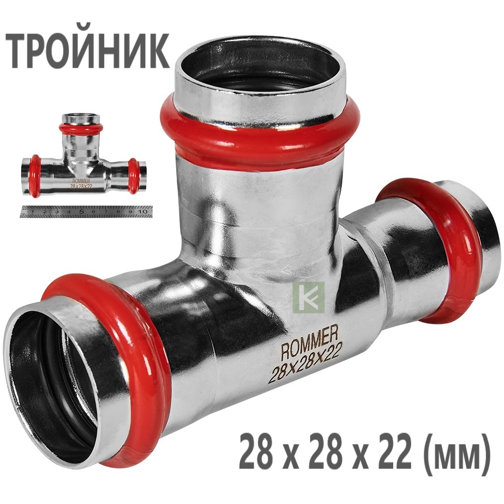 RSS-0014-282822 ROMMER Тройник переходной 28х28х22, из нержавеющей стали прессовой