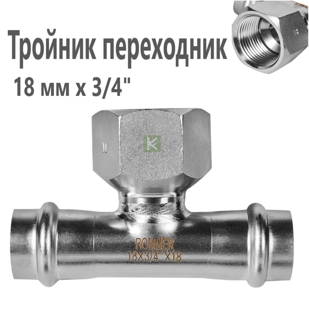 RSS-0015-001834 ROMMER Тройник-переходник 18х3/4 ВР, из нержавеющей стали прессовой