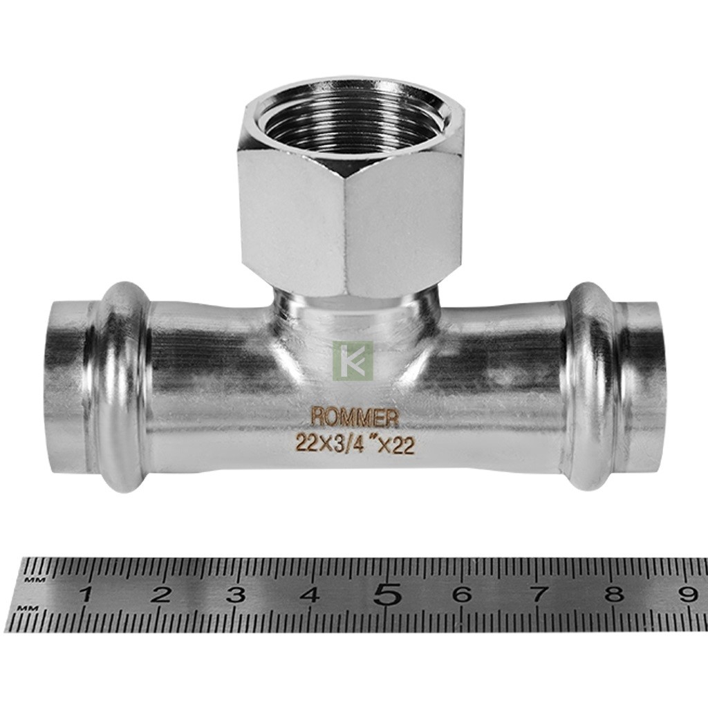 RSS-0015-002234 ROMMER Тройник-переходник 22х3/4 ВР, из нержавеющей стали прессовой