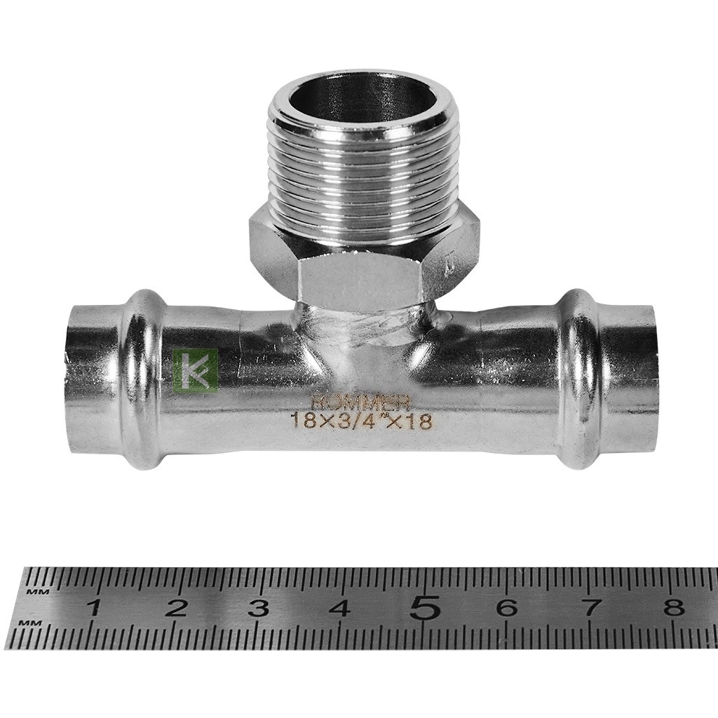 RSS-0016-001834 ROMMER Тройник-переходник 18х3/4 НР, из нержавеющей стали прессовой