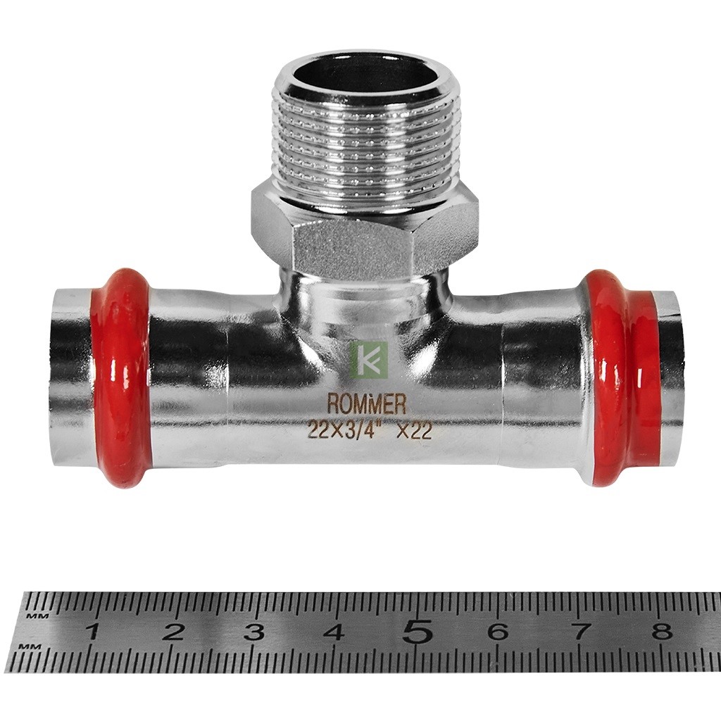 RSS-0016-002234 ROMMER Тройник-переходник 22х3/4 НР, из нержавеющей стали прессовой