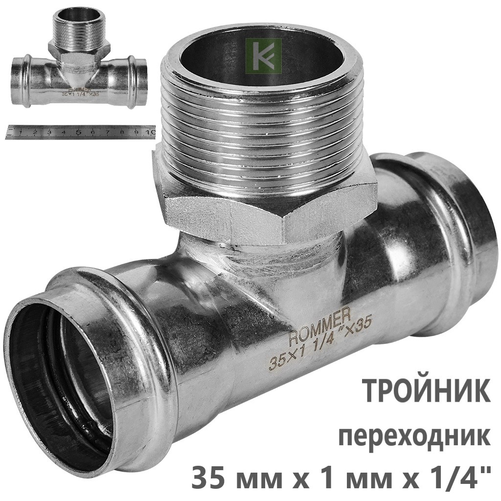RSS-0016-035114 ROMMER Тройник-переходник 35х11/4 НР, из нержавеющей стали прессовой