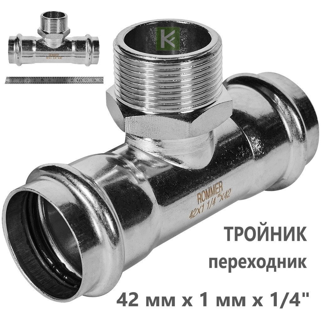 RSS-0016-042114 ROMMER Тройник-переходник 42х11/4 НР, из нержавеющей стали прессовой