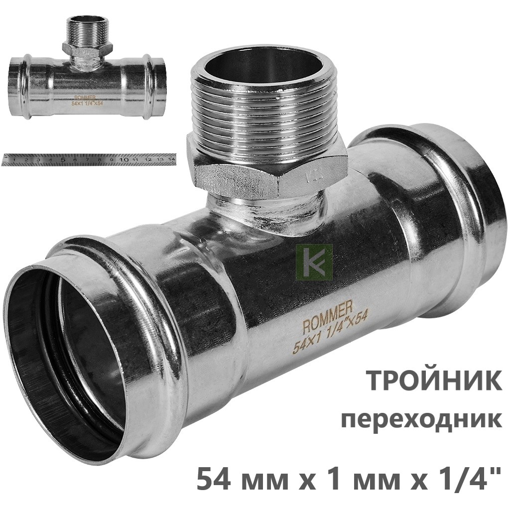 RSS-0016-054114 ROMMER Тройник-переходник 54х11/4 НР, из нержавеющей стали прессовой