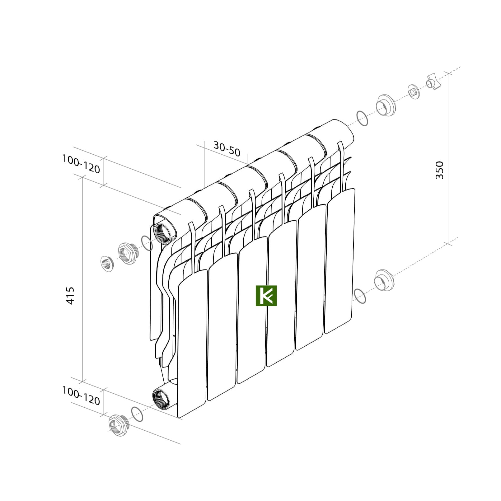 Особая волнообразная форма оребрения повышает теплоотдачу радиатора отопления на 3% за счет беспрепятственного прохождения нагреваемого воздуха при движении внутри радиатора.