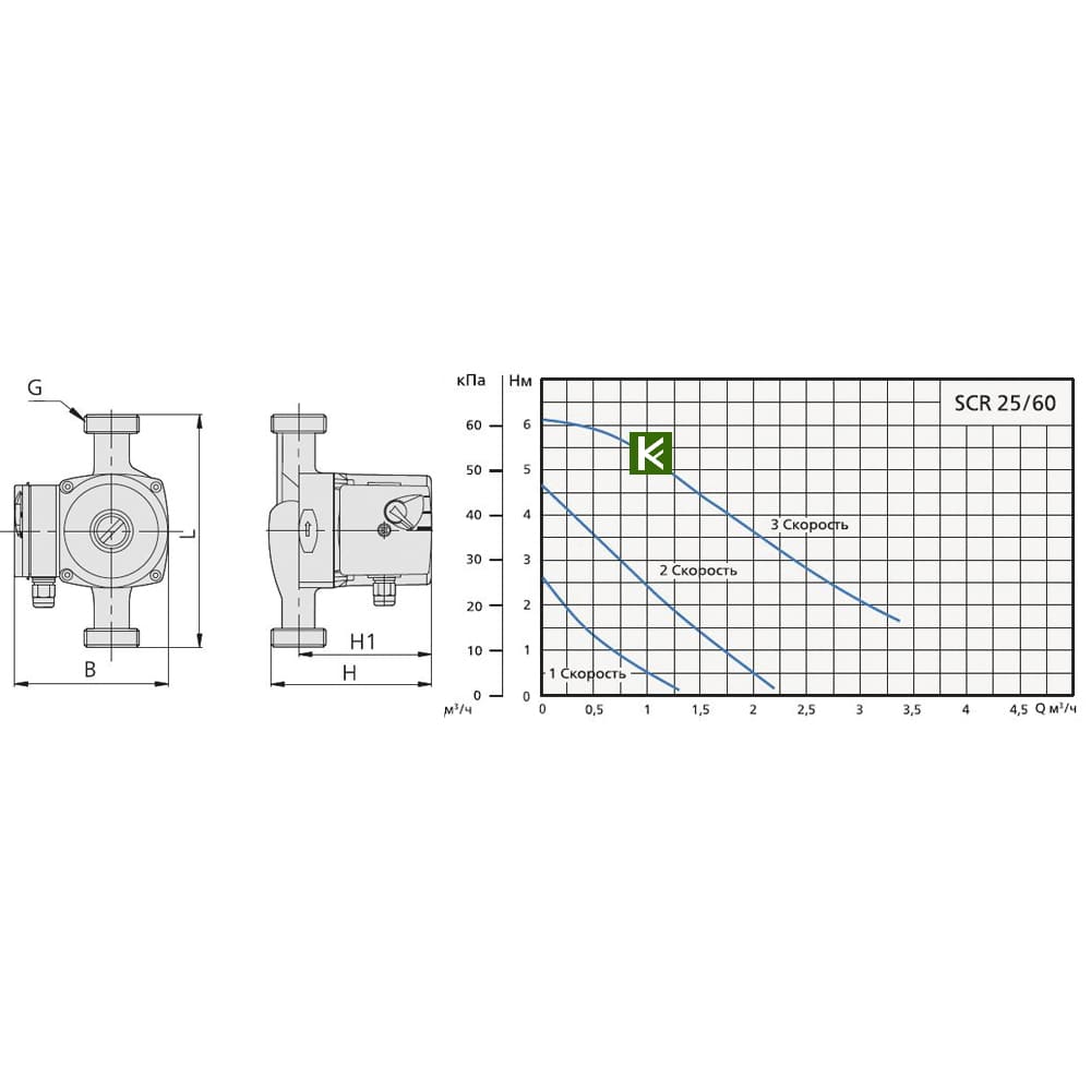 Циркуляционный насос Speroni SCR 25/60-180 3х-скоростной