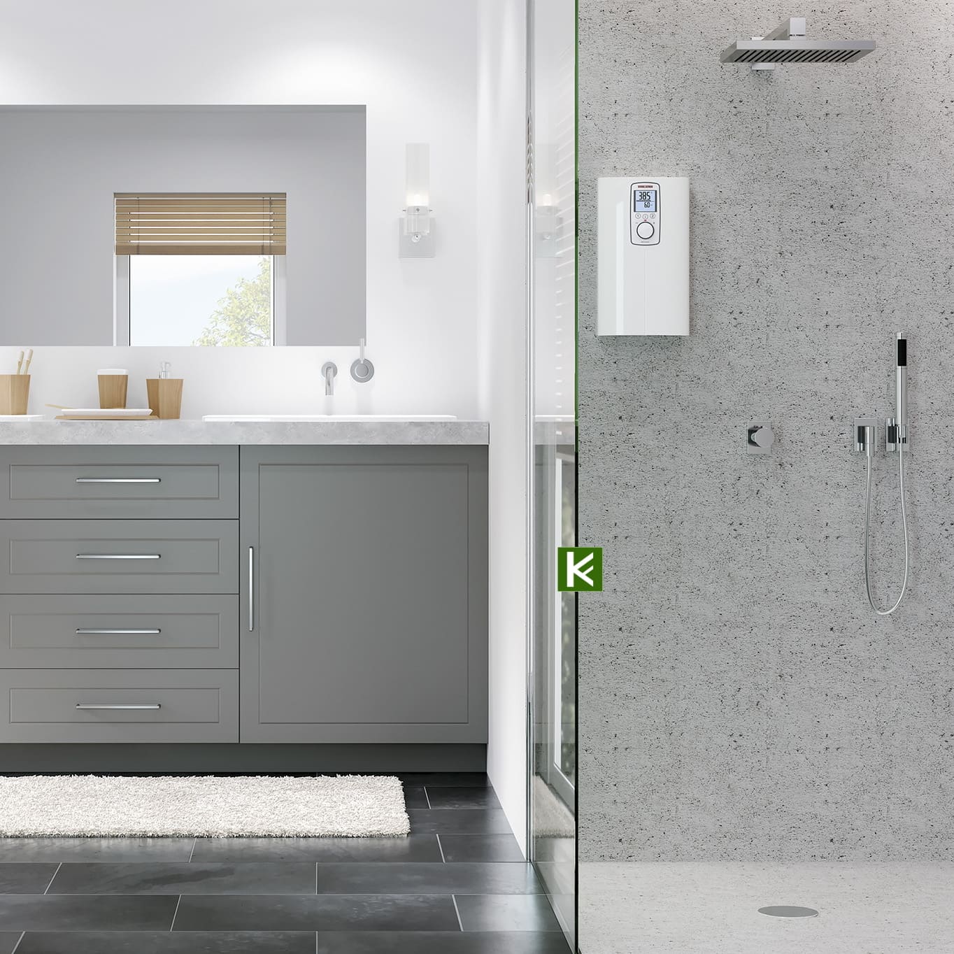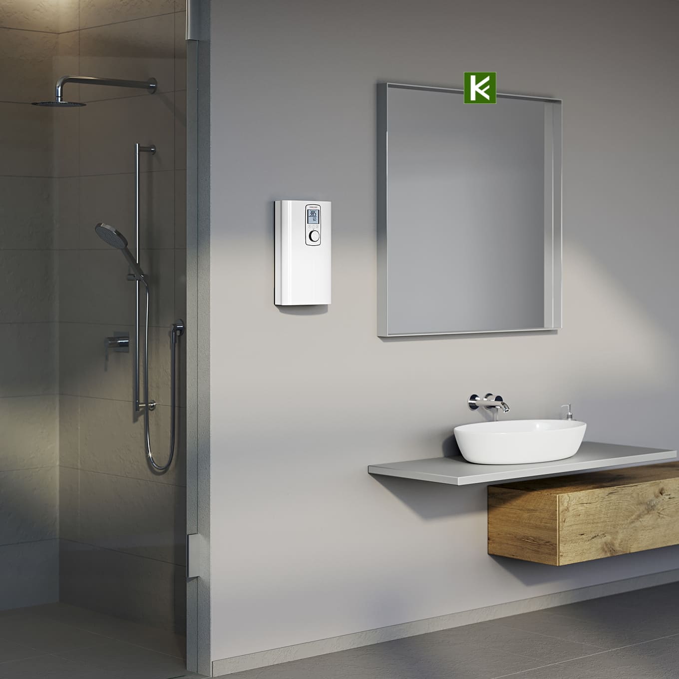 Проточный нагреватель Штибель Элтрон с полным электронным управлением имеет автоматическую подстройку мощности, обеспечивающую постоянную температуру воды.