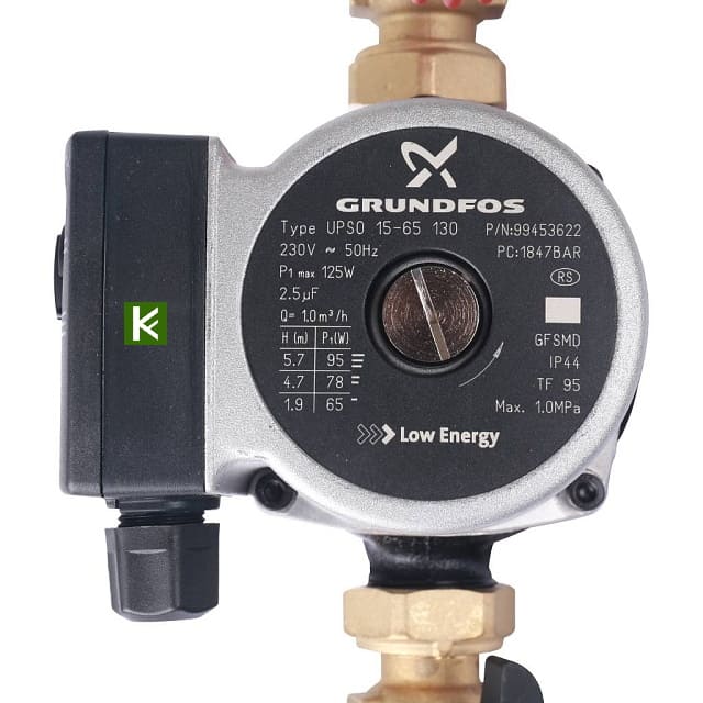 Насосная группа Stout SDG-0001-002002 поставляется с насосом Grundfos UPSO 15-65 130, укомплектована блочной теплоизоляцией. Давление в системе не должно превышать 10 бар. Температура теплоносителя - до +110°С.