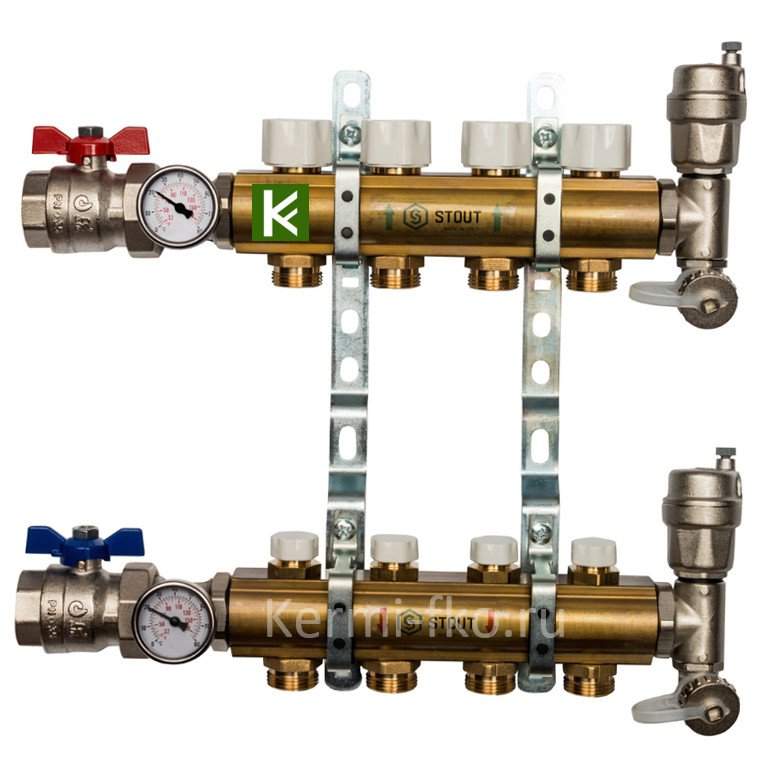 Распределительный коллектор STOUT SMB 0468 с вентилями (в сборе) для радиаторного отопления.
