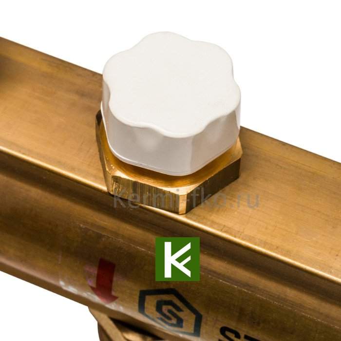 Коллекторы укомплектованы шаровыми кранами для отключения от системы отопления, а также спускными кранами и автоматическими воздушными клапанами, устанавливаемыми в конце каждого коллектора.