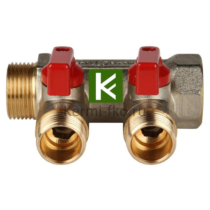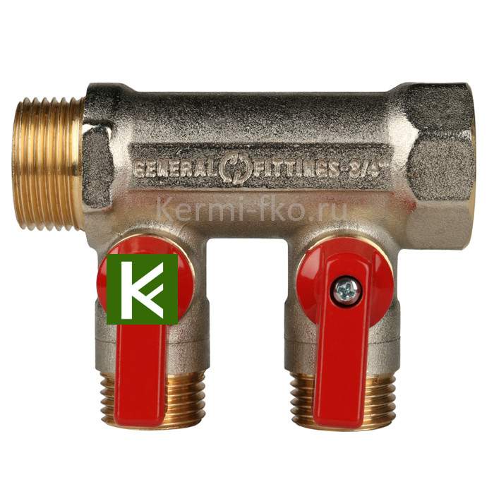Коллектор воды STOUT (Стаут) SMB 6200 341202 имеет 2 отвода, диаметр коллектора 3/4", диаметр выходов 1/2".