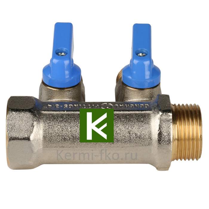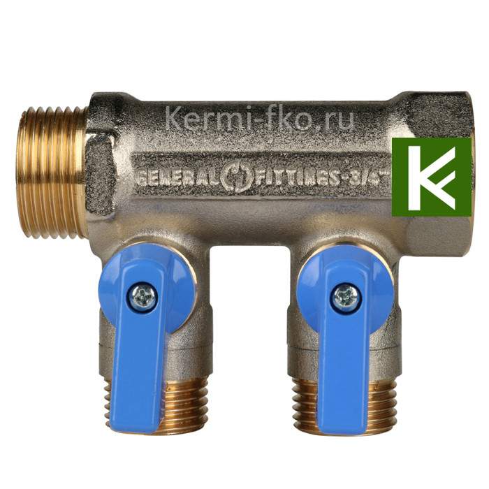 Коллектор никелированный STOUT с синими ручками 3/4"х1/2"х2