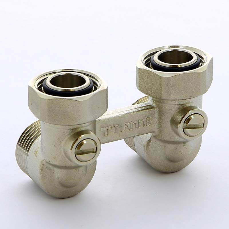 Краны для радиатора с нижним подключением, угловой мультифлекс Tiemme