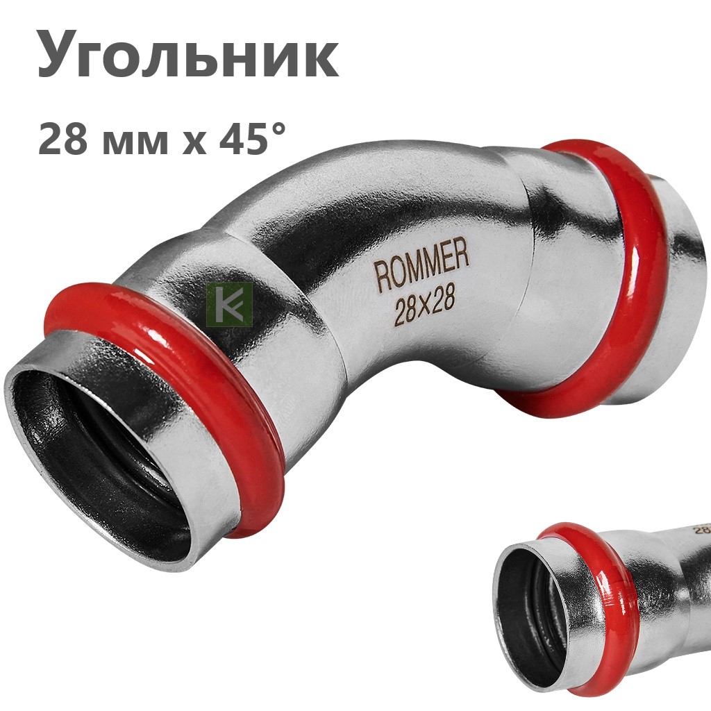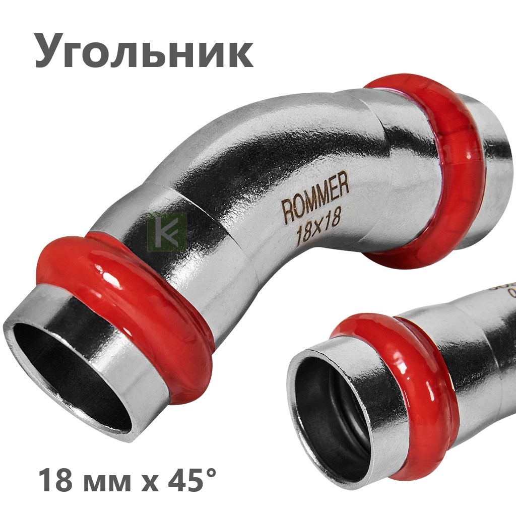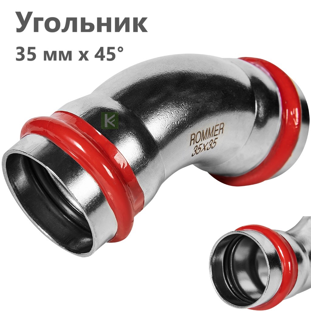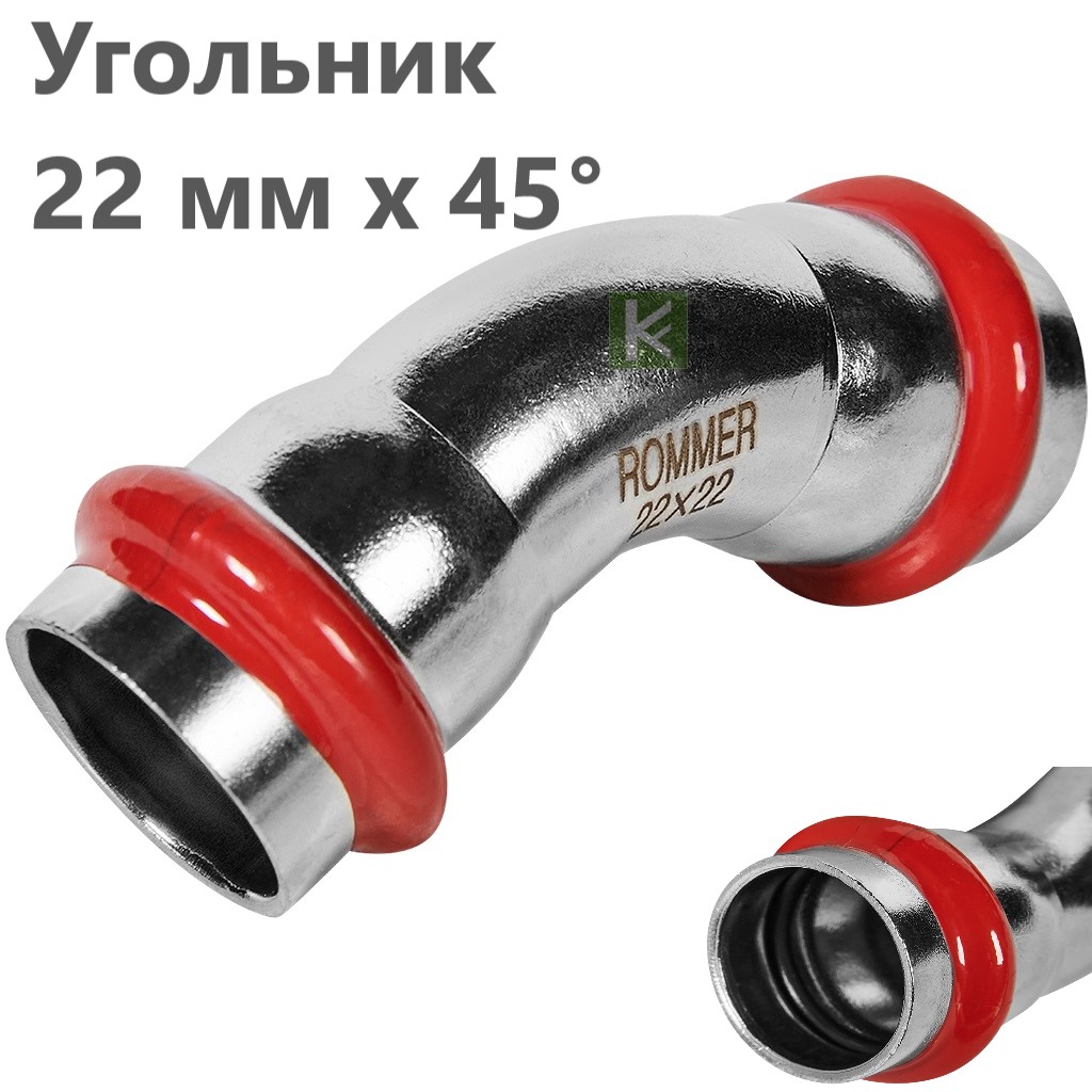 Пресс-углы Rommer RSS-0005 из нержавеющей стали с углом поворота 45° имеют раструбы с обеих сторон фитинга. Толщина стенки составляет 1,5 мм. Пресс-система ROMMER из нержавеющей стали - это высококачественное, устойчивое к коррозии, долговечное и надежное соединение пресс-фитингов и труб, изготовленных из гигиеничной нержавеющей стали SUS 304, способные выдерживать резкие перепады давления. Трубы и фитинги Роммер из нержавейки можно применять в системах с рабочим давлением до 16 атмосфер. Температура рабочей среды (при условии применения с уплотнителями из EPDM) может находиться в диапазоне от -35°C до +110°C. Опрессовка соединений труб и фитингов производится пресс-инструментом с насадками типа «V», имеющих трехточечный профиль обжима.