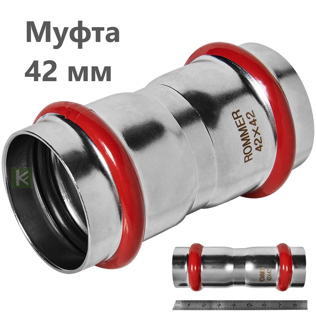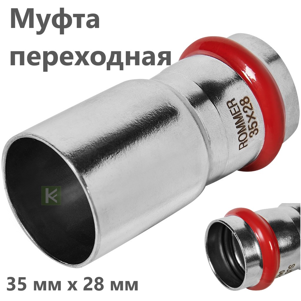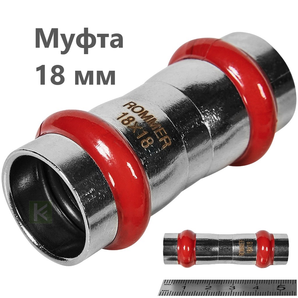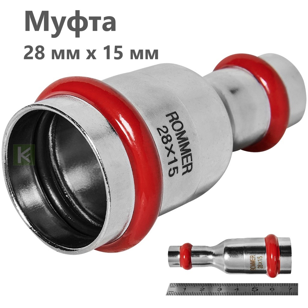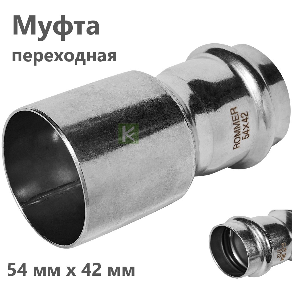 Равнопроходные пресс-муфты Rommer RSS-0017 из нержавеющей стали имеют раструбы с обеих сторон соединителя, а переходные муфты Rommer серии RSS-0018 снабжены раструбами разных диаметров с обеих сторон фитингов. Пресс-система ROMMER из нержавеющей стали - это высококачественное, устойчивое к коррозии, долговечное и надежное соединение пресс-фитингов и труб, изготовленных из гигиеничной нержавеющей стали SUS 304, способные выдерживать резкие перепады давления. Трубы и фитинги Роммер из нержавейки можно применять в системах с рабочим давлением до 16 атмосфер. Температура рабочей среды (при условии применения с уплотнителями из EPDM) может находиться в диапазоне от -35°C до +110°C. Опрессовка соединений труб и фитингов производится пресс-инструментом с насадками типа «V», имеющих трехточечный профиль обжима.
