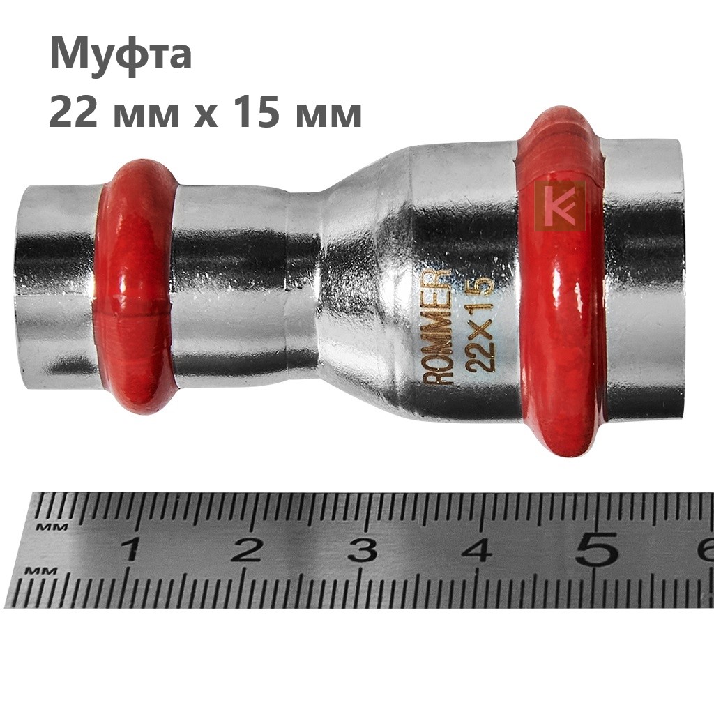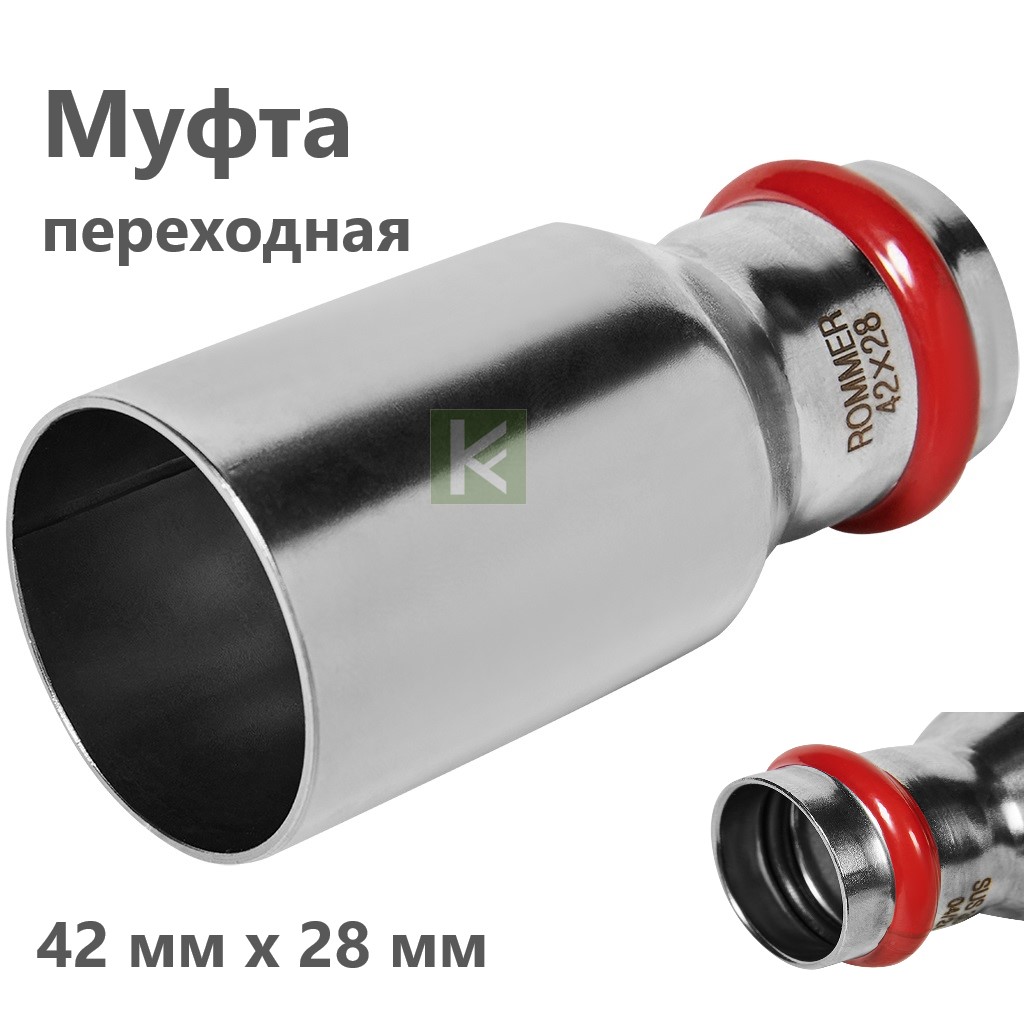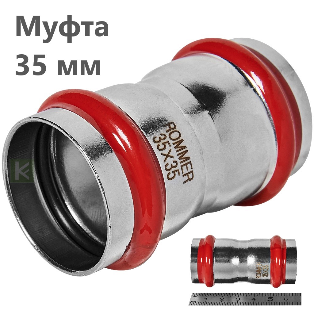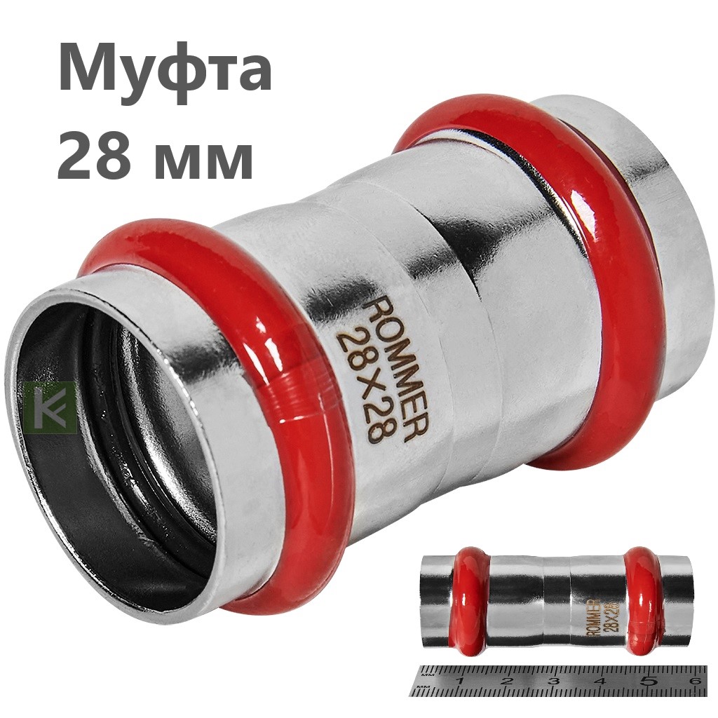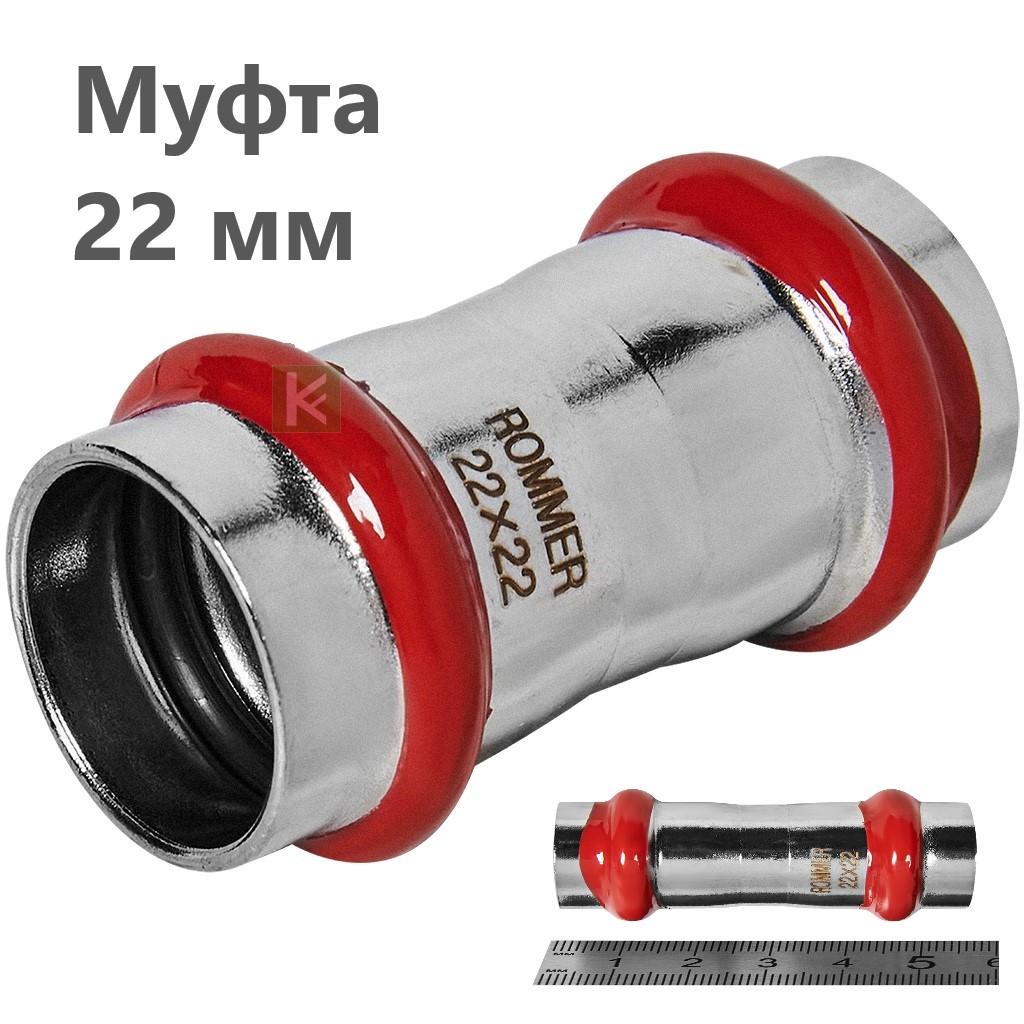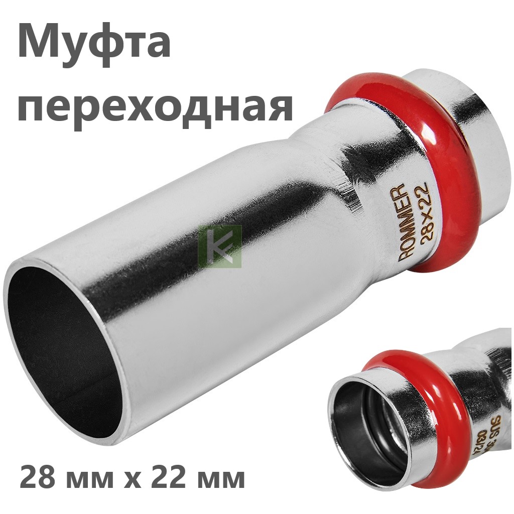 Равнопроходные пресс-муфты Rommer RSS-0017 из нержавеющей стали имеют раструбы с обеих сторон соединителя, а переходные муфты Rommer серии RSS-0018 снабжены раструбами разных диаметров с обеих сторон фитингов. Пресс-система ROMMER из нержавеющей стали - это высококачественное, устойчивое к коррозии, долговечное и надежное соединение пресс-фитингов и труб, изготовленных из гигиеничной нержавеющей стали SUS 304, способные выдерживать резкие перепады давления. Трубы и фитинги Роммер из нержавейки можно применять в системах с рабочим давлением до 16 атмосфер. Температура рабочей среды (при условии применения с уплотнителями из EPDM) может находиться в диапазоне от -35°C до +110°C. Опрессовка соединений труб и фитингов производится пресс-инструментом с насадками типа «V», имеющих трехточечный профиль обжима.