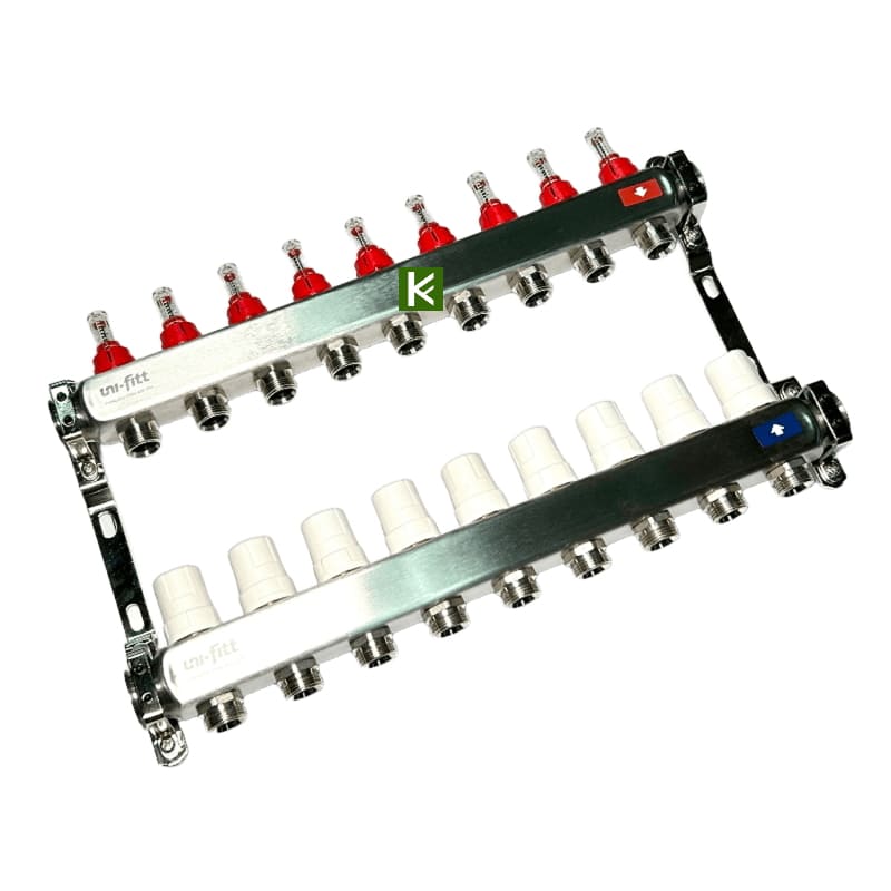 Коллекторная группа Uni-Fitt OPTIMAL 9 выходов, с расходомерами, из нержавеющей стали