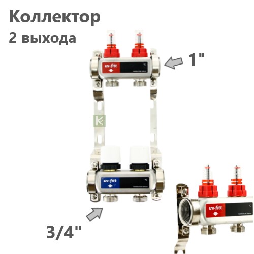 Коллектор Uni-Fitt с расходомерами 1х3/4"EK, 2 вых. |