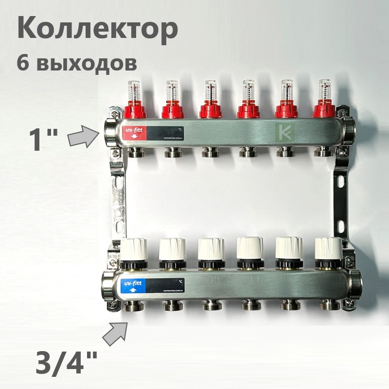 Коллекторы водяного теплого пола Uni Fitt (Юнифит) – это коллекторные группы, которые предназначены для распределения и регулирования потоков теплоносителя в низко- или высокотемпературных системах отопления.