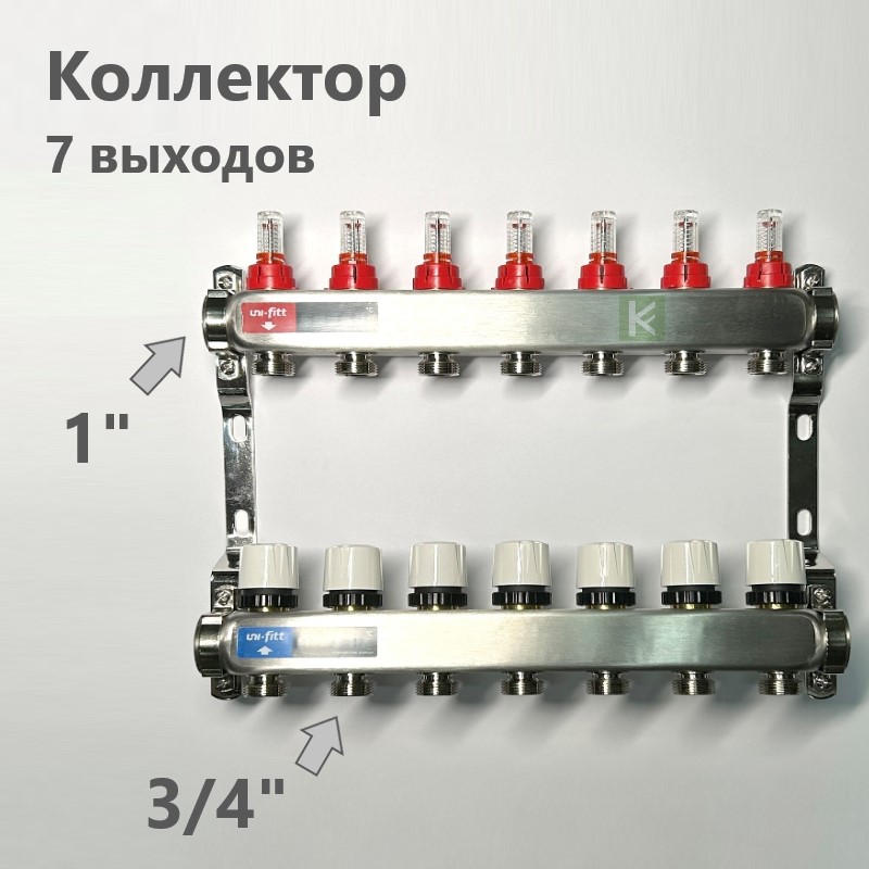 Коллектор Uni-Fitt с расходомерами 1х3/4"EK, 7 вых. |