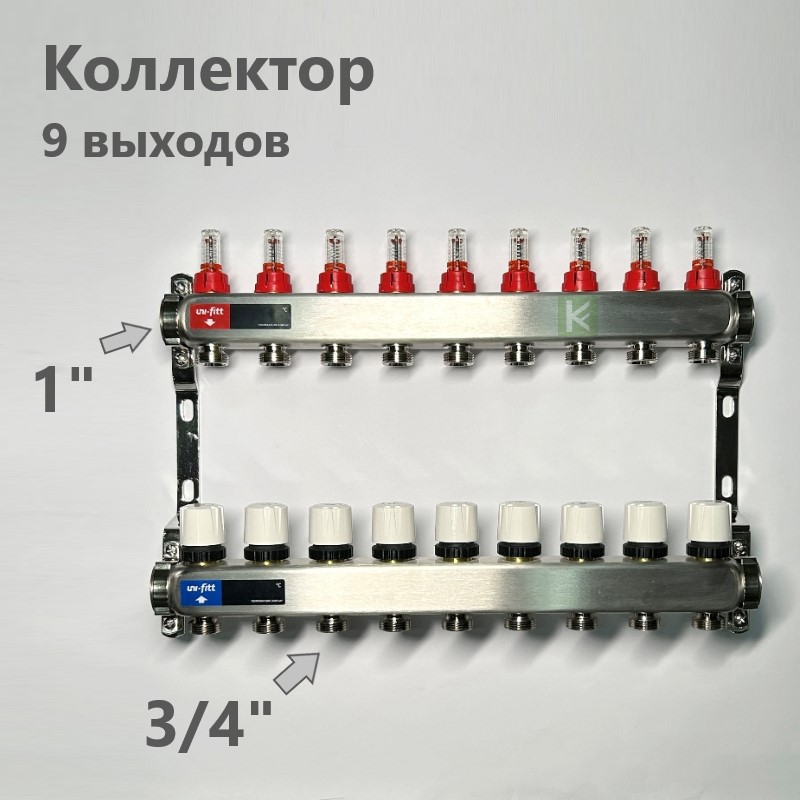 Коллектор Uni-Fitt с расходомерами 1х3/4"EK, 9 вых. |