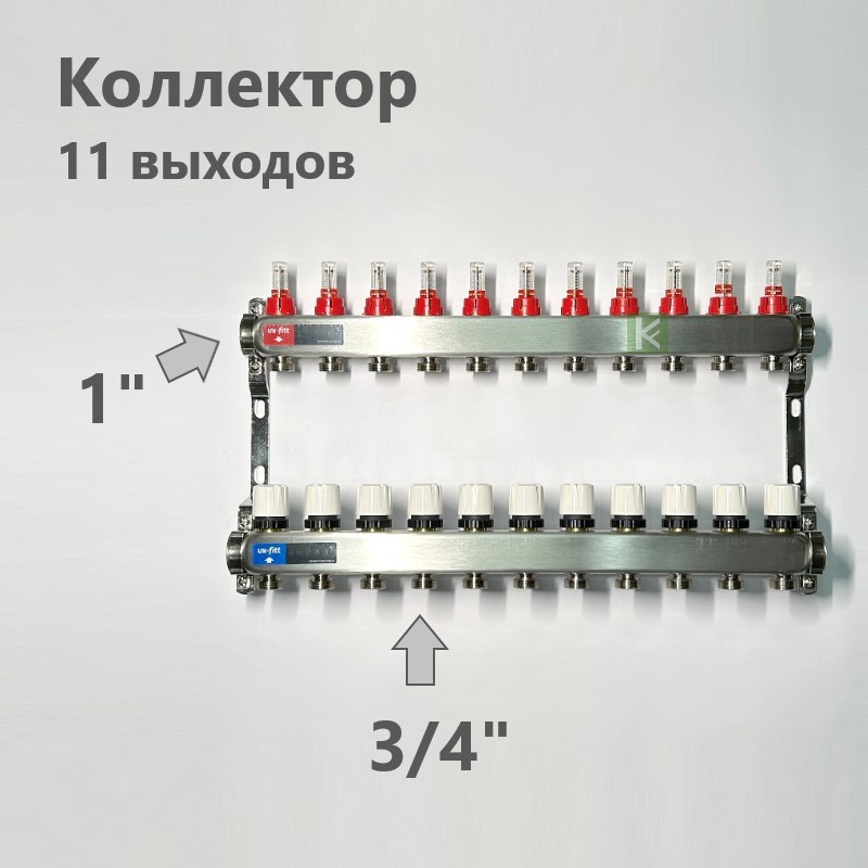 Коллектор Uni-Fitt с расходомерами 1х3/4"EK, 11 вых. |