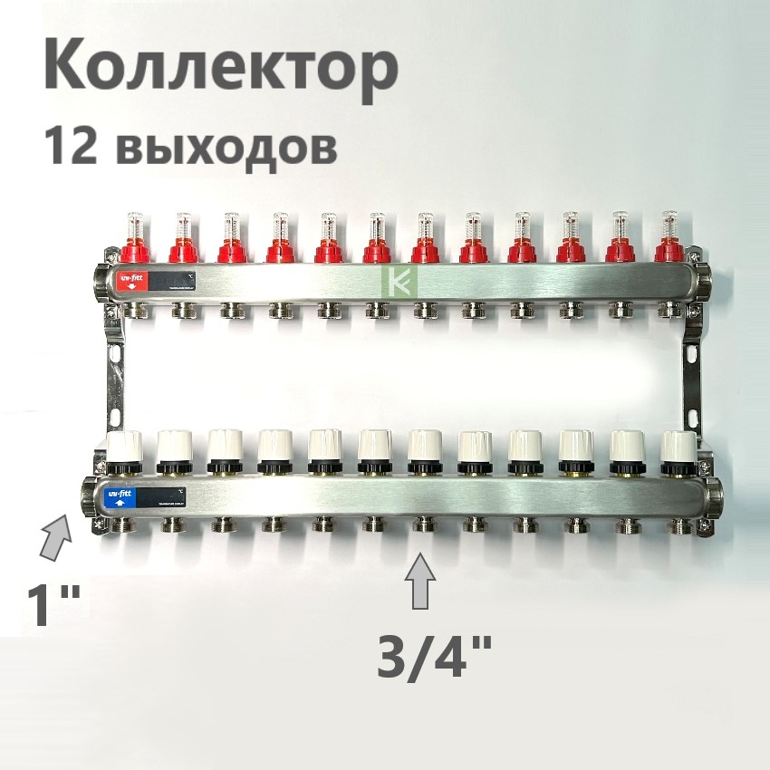 Коллектор Uni-Fitt с расходомерами 1х3/4"EK, 12 вых. |