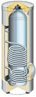 Для нагрева жидкости используется тепло, выделяемое отопительным котлом центрального или локального отопления. Резервуар для воды изготавливается из нержавеющей стали и покрывается изнутри эмалью, которая, наряду с анодом из магния, обеспечивает дополнительную защиту от коррозии. Особая конструкция теплообменного устройства позволяет равномерное распределять тепло по всему объему нагреваемой жидкости. Также в состав конструкции бойлера включен утеплительный контур, уменьшающий потери тепла и позволяющий сохранить температуру в течение длительного времени.